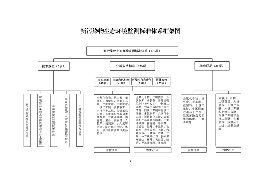 为落实《新污染物治理行动方案》,加强新污染物生态环境监测标准顶层设计,积极推动新污染物治理体系和治理能力现代化建设,我部组织编制了《新污染物生态环境监测标准体系表(2024年版)》,由新污染物生态环境监测标准体系框架图和体系项目表构成。现印发给你们,供开展新污染物调查监测、监督管理等工作参考。可转发给有关技术单位,开展标准预研究工作。