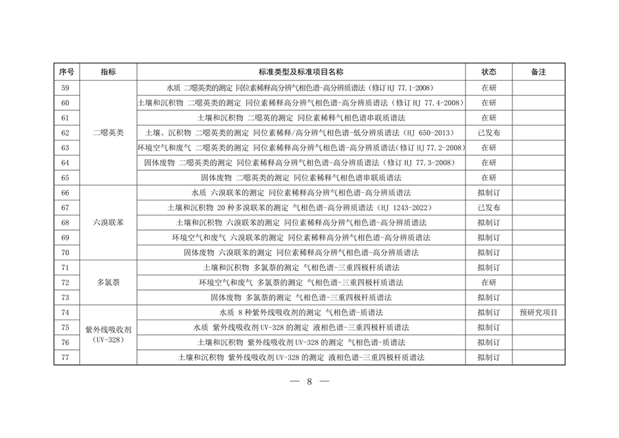 关于印发《新污染物生态环境监测标准体系表(2024年版)》的通知